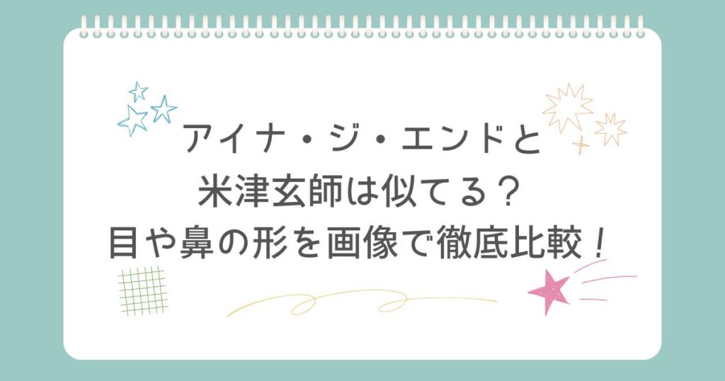米津さんの6thアルバム『LOST CORNER』(2024年8月21日発売)でコラボした、アイナ・ジ・エンドさんと米津玄師さんが「似ている」と話題になっています。今回は アイナ・ジ・エンドと米津玄師が似てる? アイナ・ジ・エンドと米津玄師の目や鼻の形を画像で... -