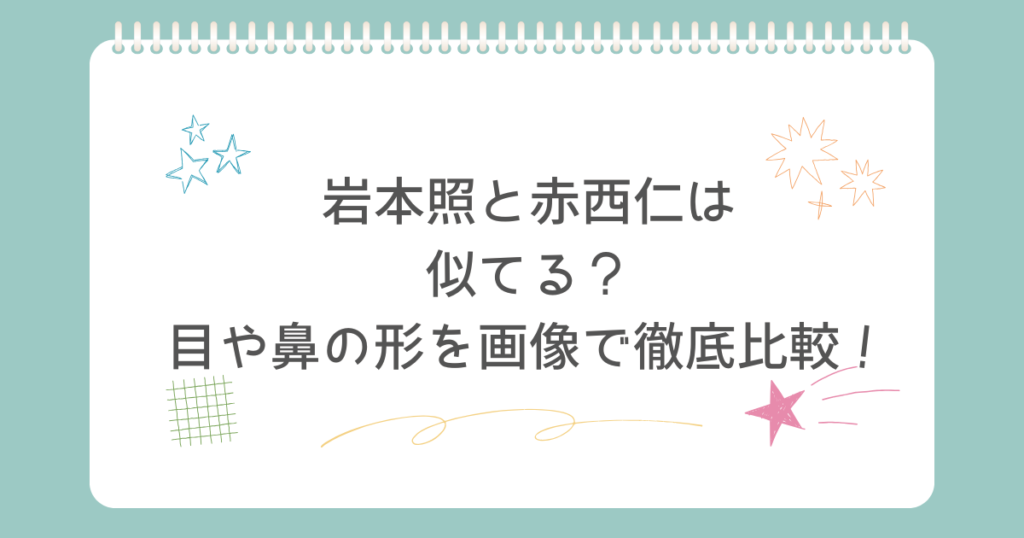 SnowManメンバー岩本照さんと元KAT-TUNメンバーの赤西仁さんが似ていると話題になっています。今回は 岩本照と赤西仁が似てる? 岩本照と赤西仁の目と鼻と口の形を画像で徹底比較! の内容についてまとめていきます。 岩本照と赤西仁は似てる? 岩本照さん... -