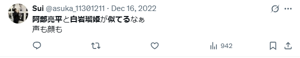 - 阿部亮平と白岩瑠姫が似てる?