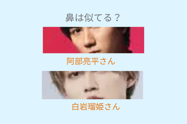 阿部亮平さんと白岩瑠姫さんの目や鼻の形を画像を使って比較していきたいと思います。