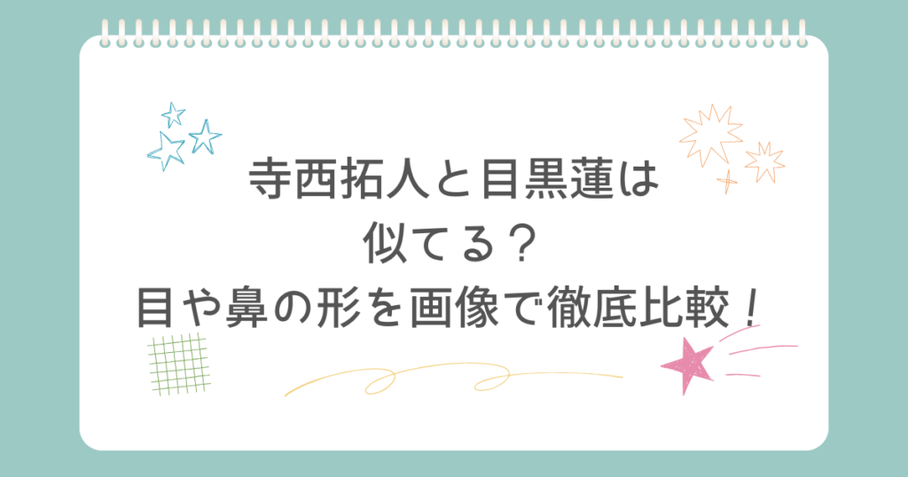以前からSNSなどで、寺西拓人さんと目黒蓮さんって似てる?という声を見かけます。 確かに並べてみるとどこか近い雰囲気がありますが、じっくり観察すると、似ている部分と似ていない部分がはっきりと見えてきます。 この記事では、写真を元に目・鼻・口を... -