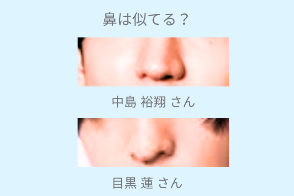 - 鼻先(中島裕翔さんは丸み/ 目黒蓮さんはシャープ)