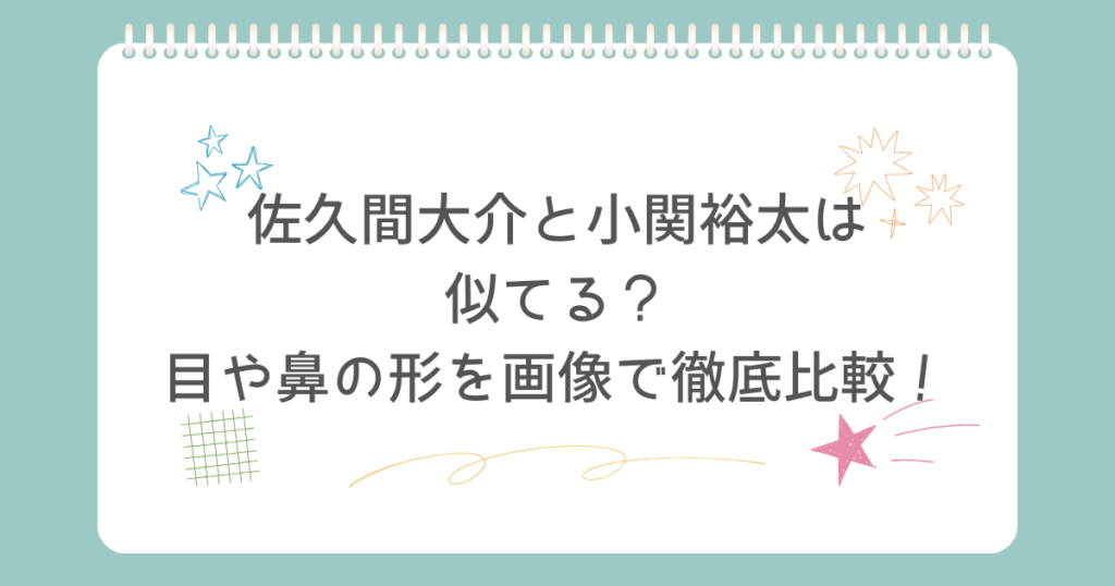 Snow Man佐久間大介さんと、俳優の小関裕太さん、どちらも柔らかな雰囲気と明るい笑顔の2人が似ていると話題になっています。 今回は 佐久間大介と小関裕太が似てる? 佐久間大介と小関裕太の目と鼻と口の形を画像で徹底比較! の内容について画像を交えて... -