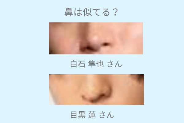 - 鼻先の形(白石隼也さんは丸み / 目黒蓮さんはシャープ)