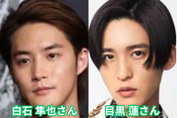 白石隼也さんは落ち着いた目元で、目黒蓮さんはくっきりとした二重が映えるね。
